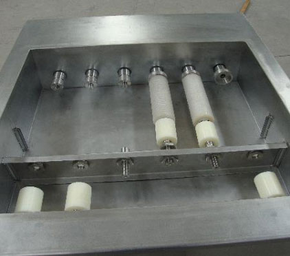 制藥生產(chǎn)企業(yè)或化工生產(chǎn)企業(yè),水過濾、空氣過濾、或其它過濾用過的濾芯、鈦棒、不銹鋼泵、鎳棒,一般只是人工在自來水上沖洗一下,就再次去使用,這種清洗出來的濾芯或鈦棒過濾效果遠遠達不到使用要求,我公司制作的超聲波濾芯清洗機是采用,內(nèi)沖外洗的方式對濾芯或鈦清洗,內(nèi)沖——在濾芯或鈦棒內(nèi)部通上帶有壓力的水和壓縮空氣,外洗——超聲波對濾芯或鈦棒的外部或空隙進行超聲波清洗。超聲波把粘結(jié)在濾芯或鈦棒上的污漬和水垢打松動以后,內(nèi)沖的沖洗水和壓縮空氣再沖洗出來,效果干凈徹底。